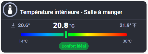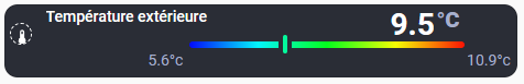 Une petite évolution des cartes : la valeur et l’unité se déplacent avec le curseur, ajout de la valeur min. et de la valeur max. relevées sur la semaine pour la carte température.