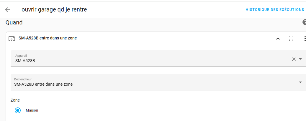 Ensuite, créer l’automatisation d’ouverture quand tu rentre dans la zone « Ouverture portail »… et c’est tout bon !