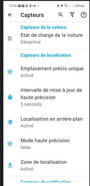 merci à tous pour vos réponses. je peux essayer de faire l’action au lieu d’envoyer une notif mais je doute que ca vienne de là. Surtout que la notif de fermeture arrive exactement au même endroit a chaque fois. J’ai modifié sur Companion la valeur"Plage de déclenchement du mode haute précision pour la zone de 1000 à 500 j’ai recu la notif plus tot (une fois testé seulement) donc coincidence ou pas je sais pas. je verrai demain. En revanche aucune incidence sur la fermeture. Toujours reçu une minute après que j’arrive. Pas trop compris a mise à jour des sensors. Est ce autre chose que ce que j’ai mis ds le post? Au pire je pourrai essayé Owntracks . Oui l’appli en arriere plan est bien activée. J’ai aussi un samsung coincidence ou pas…