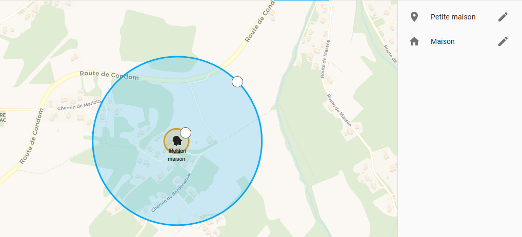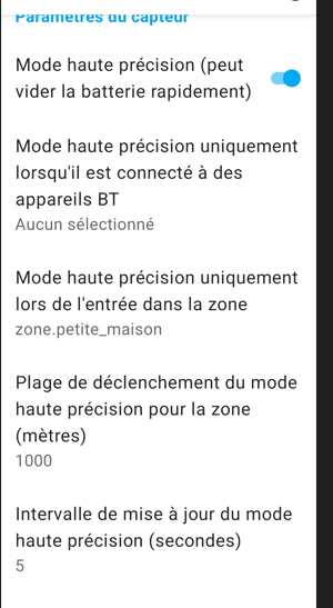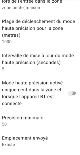 Donc quand tu te trouves dans la zone « d’ouverture » ton tel est en mode haute précision depuis plusieurs centaines de mètres et facilite ainsi l’exécution de l’automatisation via le device_tracker de l’app/du téléphone.