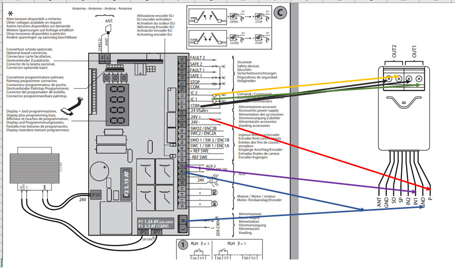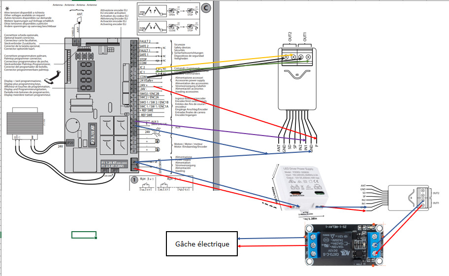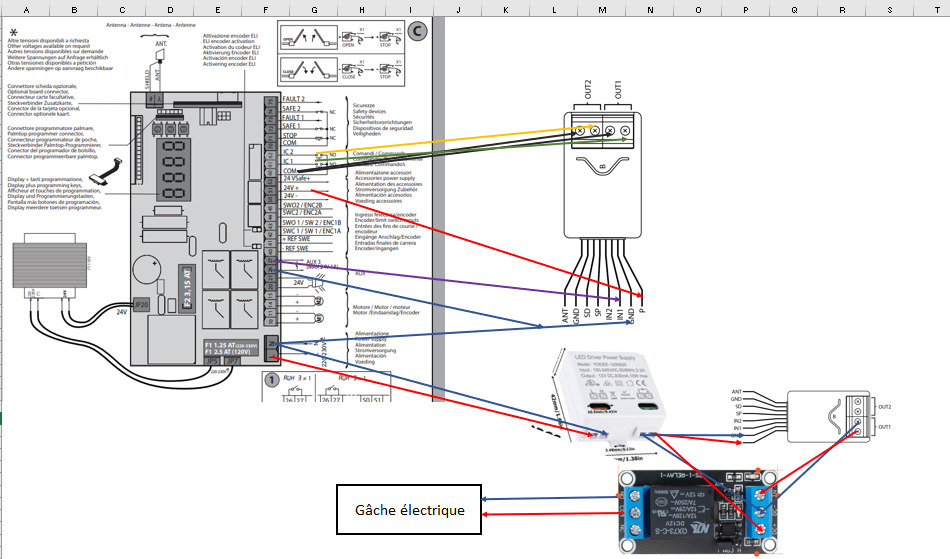 Je suis tombé sur ce schéma, qui si je comprends bien, indique que je dois également amilenter la gâche coté sorte.