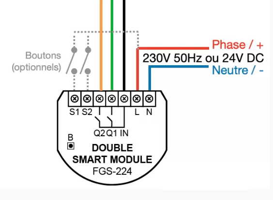 J’ai fait un autre test avec le FGS 224 en pontant L et IN et en alimentant en 24V.