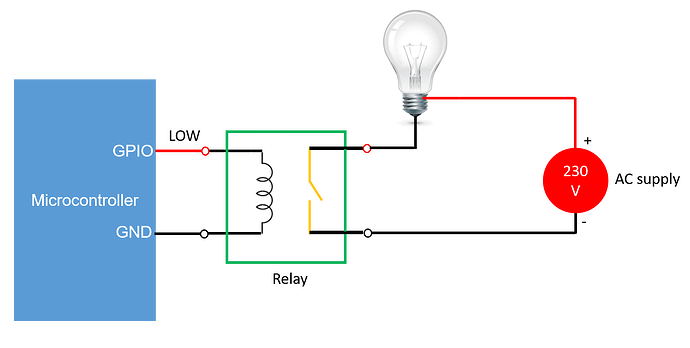 Le relais ne fais que fermer / ouvrir le circuit mais ne l’alimente pas…
