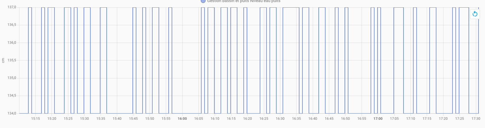 ça marche bien mais quand le puits est plein, j’ai des resultats fluctuant entre deux valeur 134 et 137 cm, ça fait 3 cm d’écart et il n’y a pas de vagues dans le puits lol