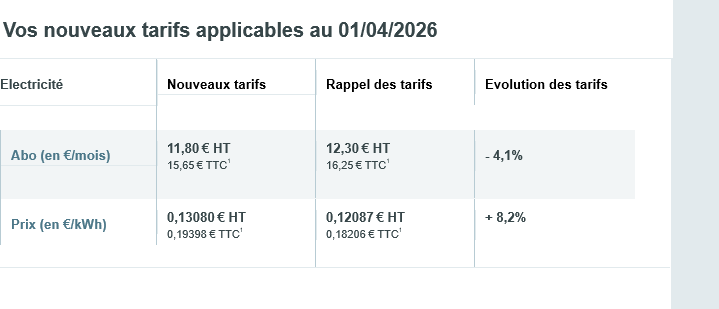 Ouais donc plus élevé que les tarifs actuels chez fes fournisseurs avec prix bloqués pendant 12 mois.