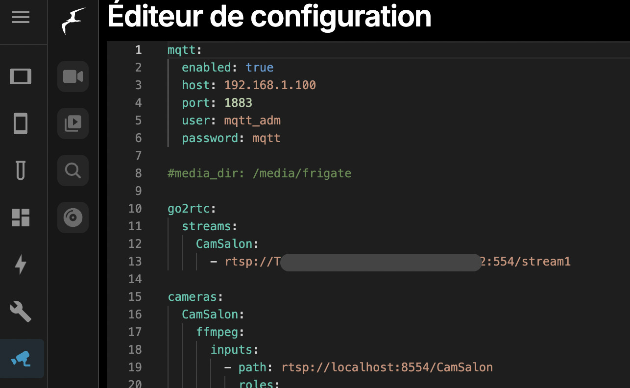 J’avais pour habitude de retrouver ma configuration Frigate dans /Config/frigate.yml mais cela fait un moment que je n’y ai pas remis le nez.