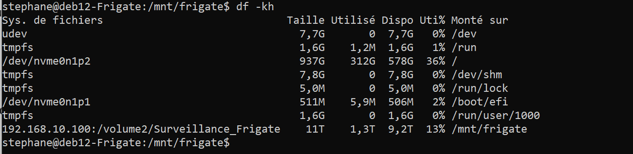 tu expose /home/$USER/mnt/frigate à ton container - ./mnt/frigate:/media/frigate et non /mnt/ - /mnt/frigate:/media/frigate