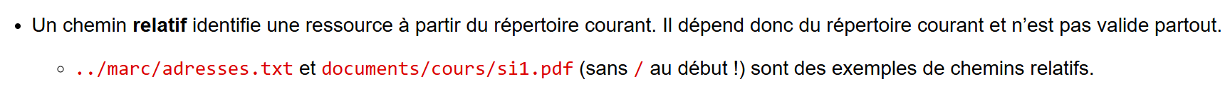 Le « . » indique un emplacement relatif (pour ne pas avoir a saisir l’emplacement complet).