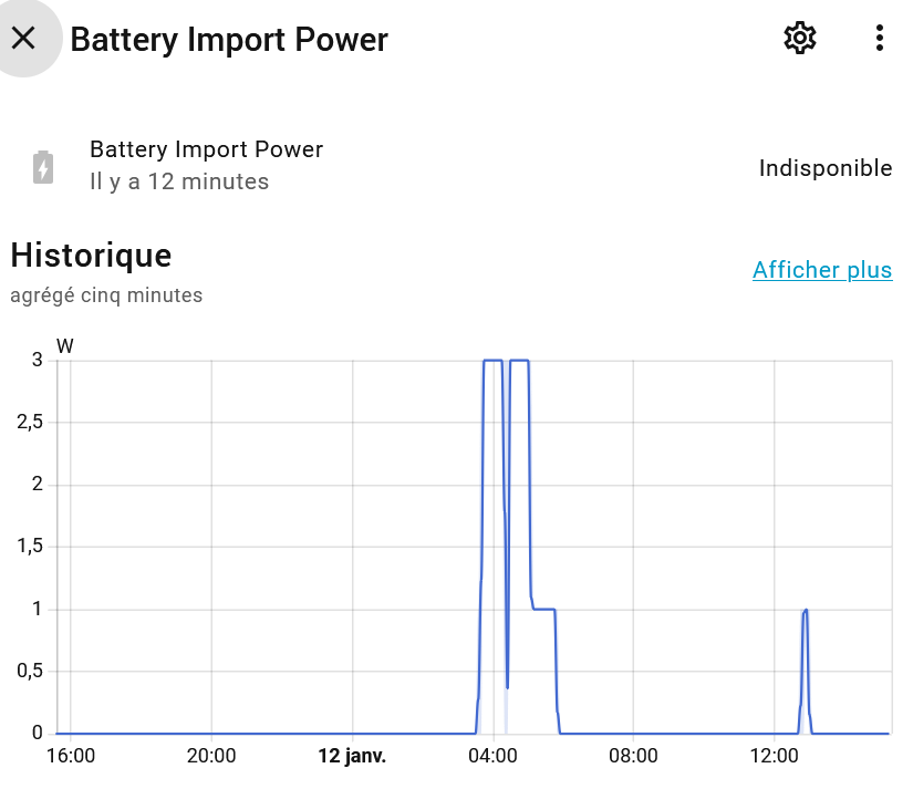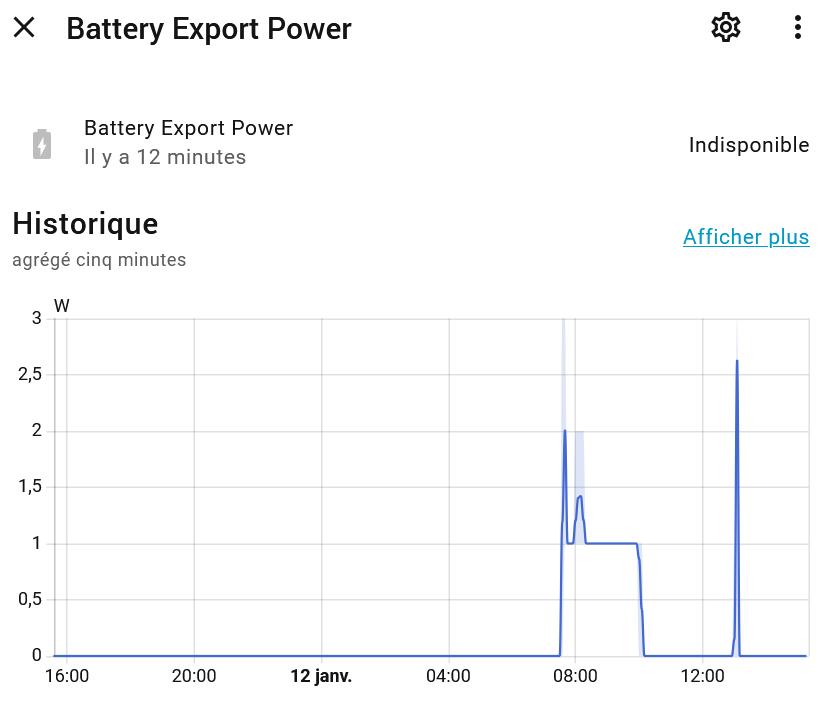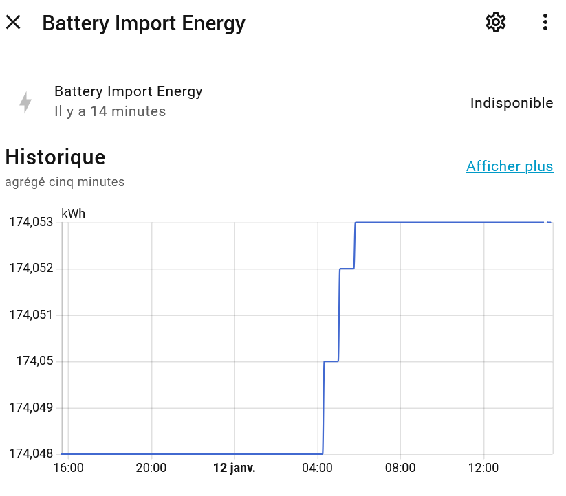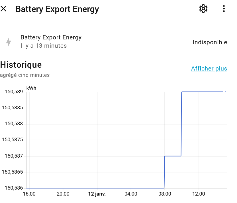 Batterie export power, à partir du sensor Enphase donnant la charge décharge de la batterie. Ensuite j’ai créé 2 template intégrale de Riemann pour avoir l’énergie. Je rencontre les pbs suivants : alors que le sensor enphase charge-décharge est en kW, j’obtiens des sensors batterie import export puissance en W et j’ai des sensors energie aux valeurs aberrantes