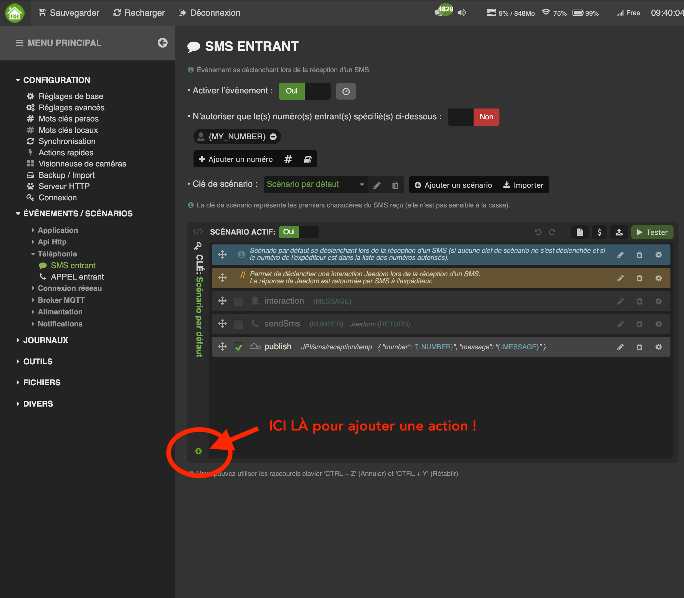 Attention dans "action": "sendSms" à bien respecter majuscules et minuscules, j’ai perdu beaucoup de temps sur des erreurs dans JPI car je mettais sendSMS ce qui est une belle boulette.
