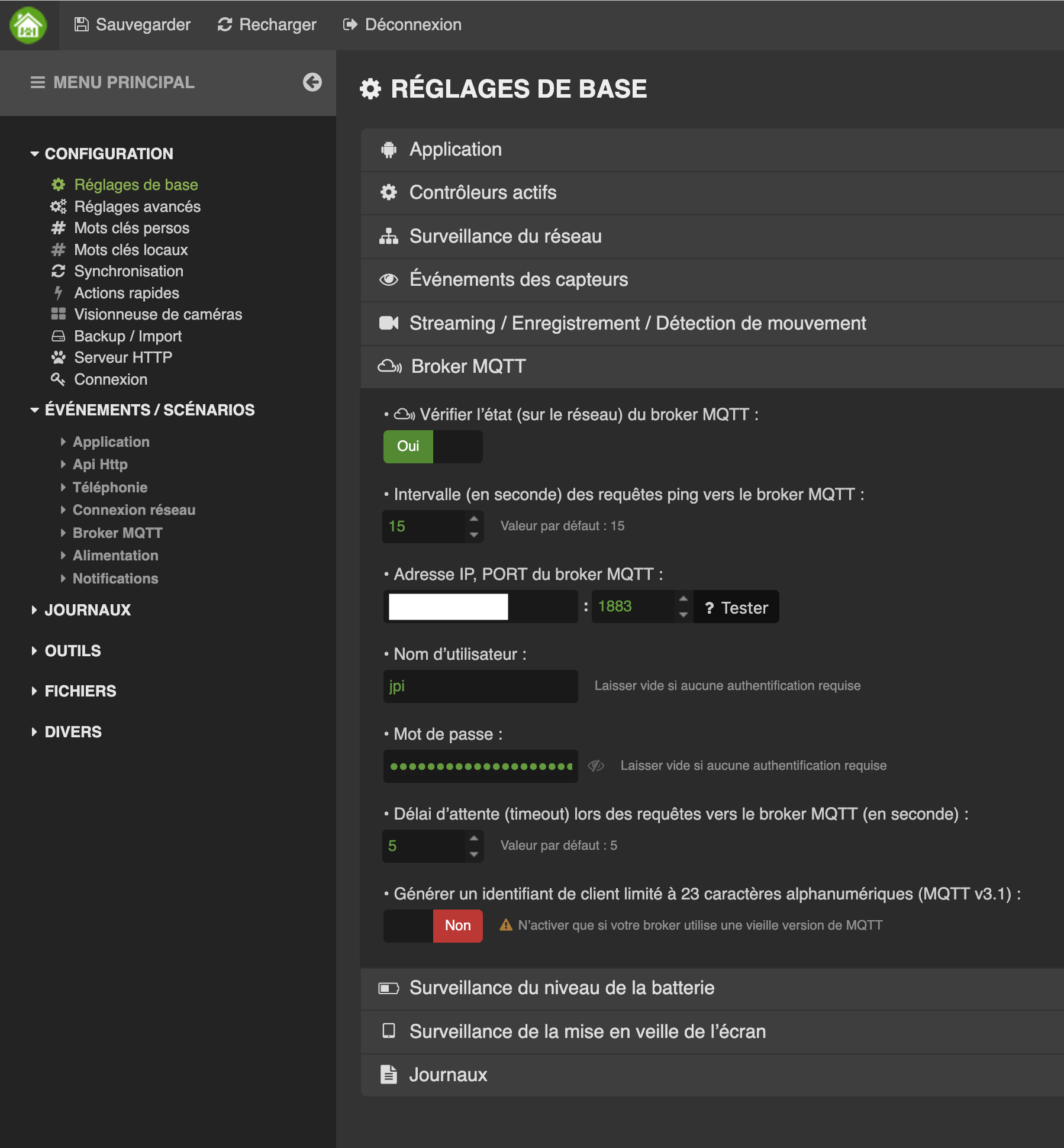 Il faut aller dans, Configuration > Réglages de base > Broker MQTT