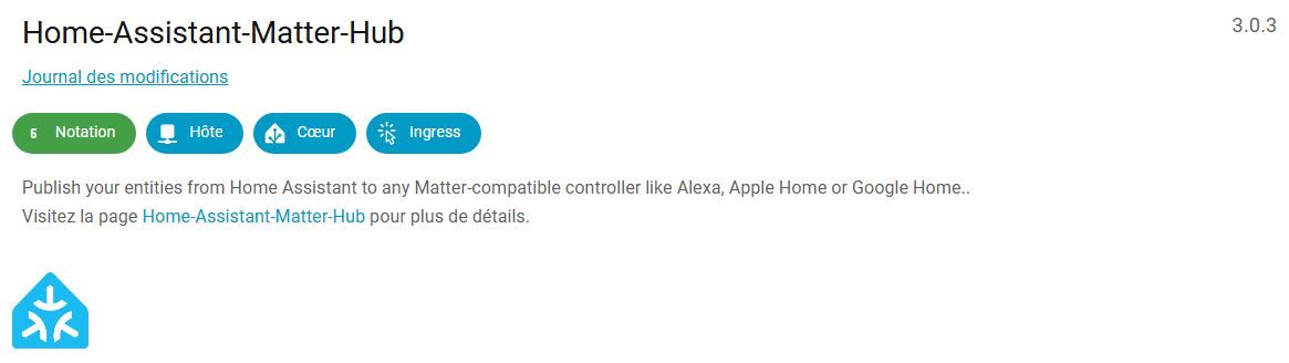 Je dois préciser que mis à part ce soucis avec MatterServer, tout fonctionnne bien, je ne vois aucune erreur dans les logs de tous les addons.