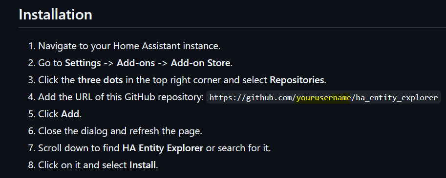 Ajouter le repo git dans le store addon et installer « HA entity explorer »