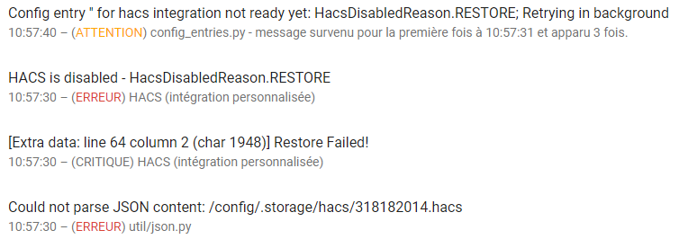 j ai essayé depuis le panneau HACS de désinstaller les dernières intégrations installées ,mais ça ne désinstalle pas .