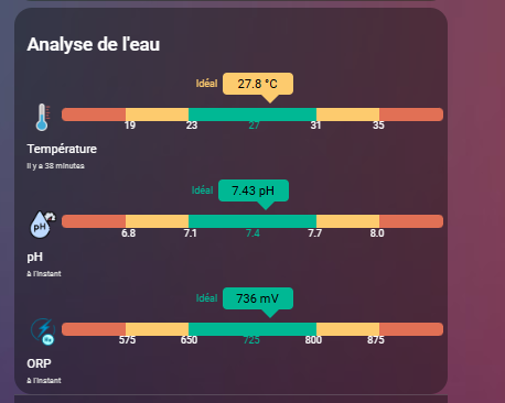 J’utilise la carte Pool Monitor Card, mais pour une raison que j’ignore, seul la température s’affiche en jaune alors qu’elle est en “idéal”. Avez vous déjà rencontré ce problème ?