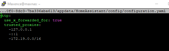 J’ai bien ajouté mon url à l’add-on Duckdns sur OMV, j’ai aussi généré un host et un ssl avec les bonnes options sur Nginx. Cependant, 400 : Bad Request. Dans les logs d’HA, j’ai bien une tentative de connexion qui est bloqué sur HomeAssistant, je me dis : c’est les trusted proxies !