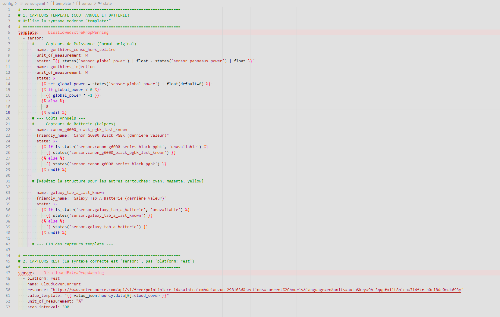 La nouvelle version 2025-12 s’est bien installée mais j’ai ensuite vu une série de messages me demandant de revoir la syntaxe de mon sensor.yaml car la formulation platform: templte ou value_template serait refusée dans la version 2026-xx, et il y avait un message pour chaque sensor défini là, avec la nouvelle syntaxe à utiliser.