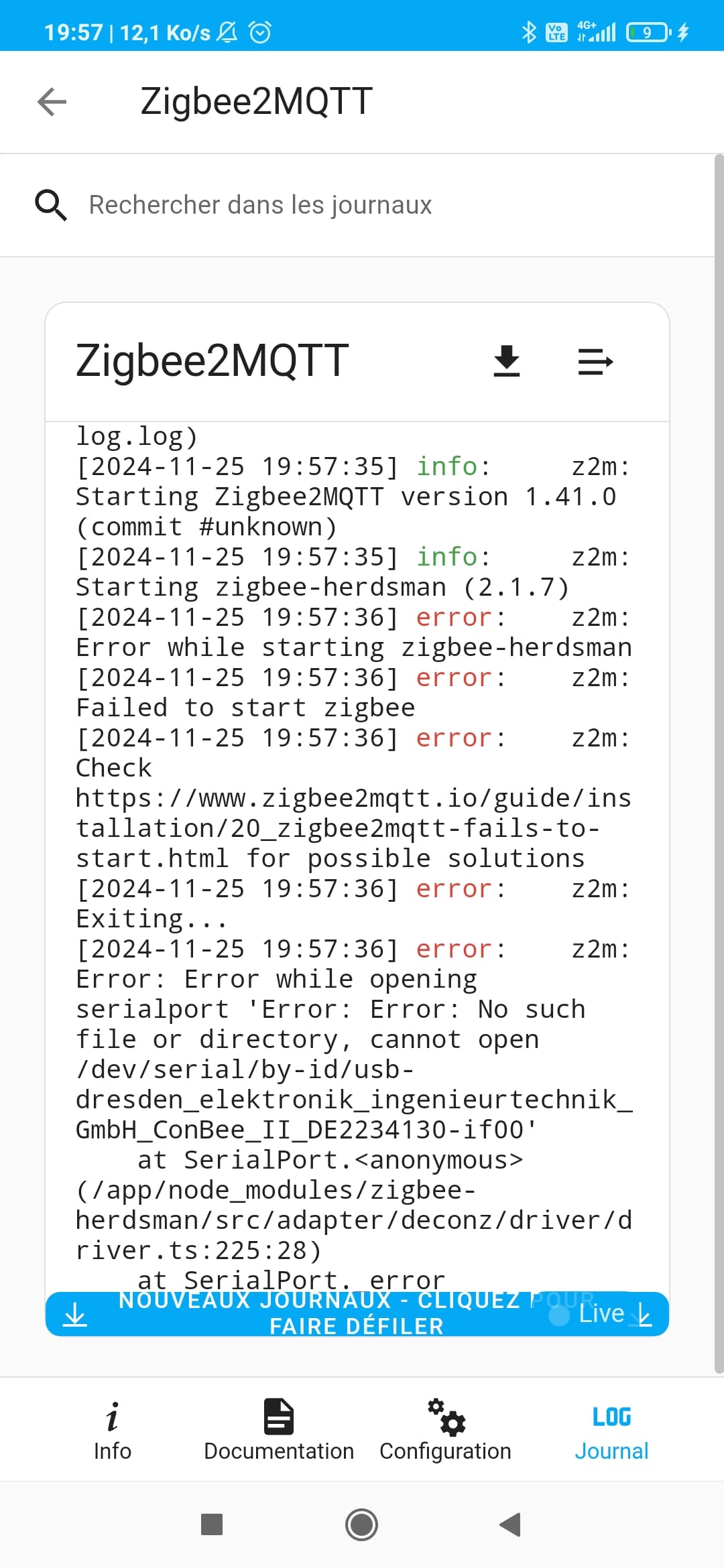Voici ce que j’ai dans les logs de Z2M