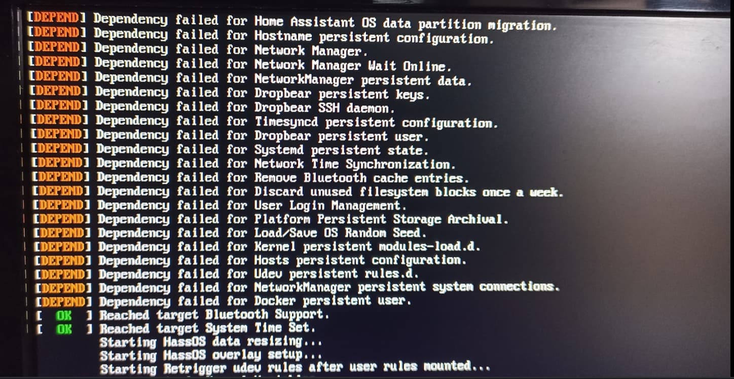 j’ai branche un ecran sur mon RPi et il m’affiche a job is running for /dev/disk/by-label/hassos-overlay