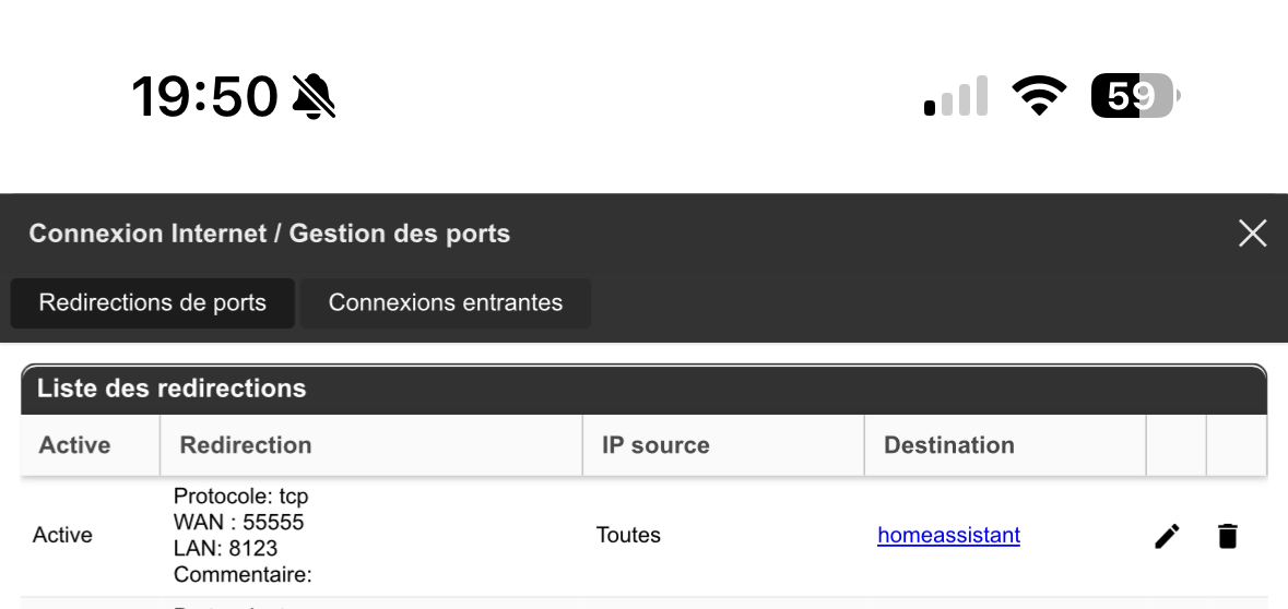En externe il faut saisir http:// ton IPwan:55555 et en interne ça redirigera vers homeassistant:8123
