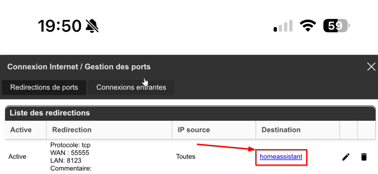 je le sais donc je veux ouvrir un port qu’est dans la plage disponible qui redirige vers le 8123 mais quand je fais un check port le port ne s’ouvre pas