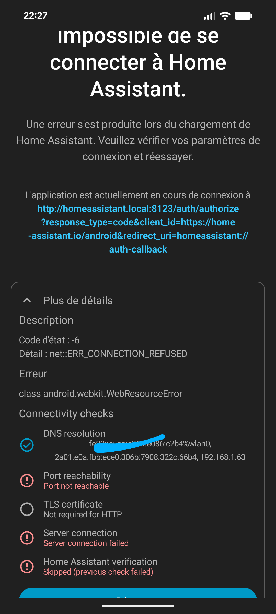 Je viens d acquérir le home assistant green, que je viens de brancher mais il m est impossible d accéder à sa configuration via l’ appli car erreur de connexion