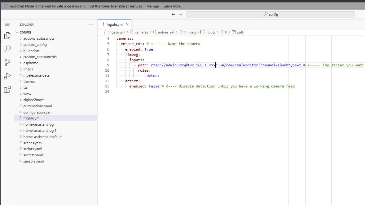 j’ai 2 choses, le code dans frigate dans configurator editor :