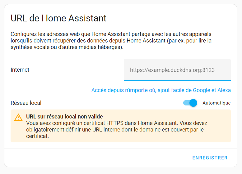 plus de local mais accessible par « https//:ip locale:8123 »