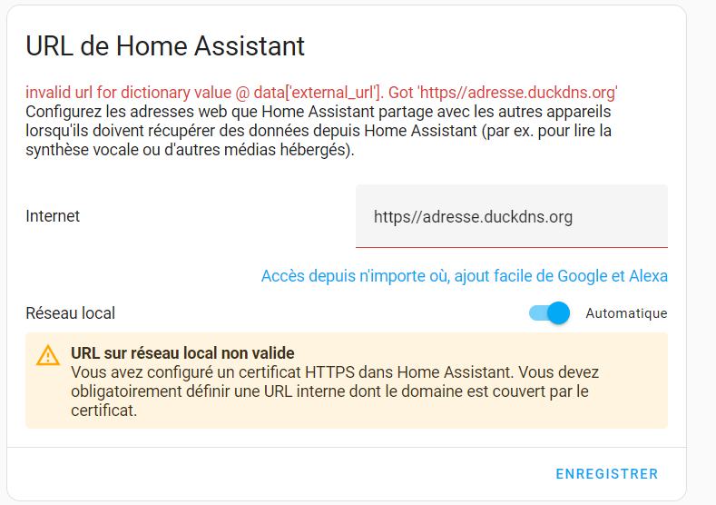 je n’arrive pas a configurer les adresse " URL de Home Assistant" ??