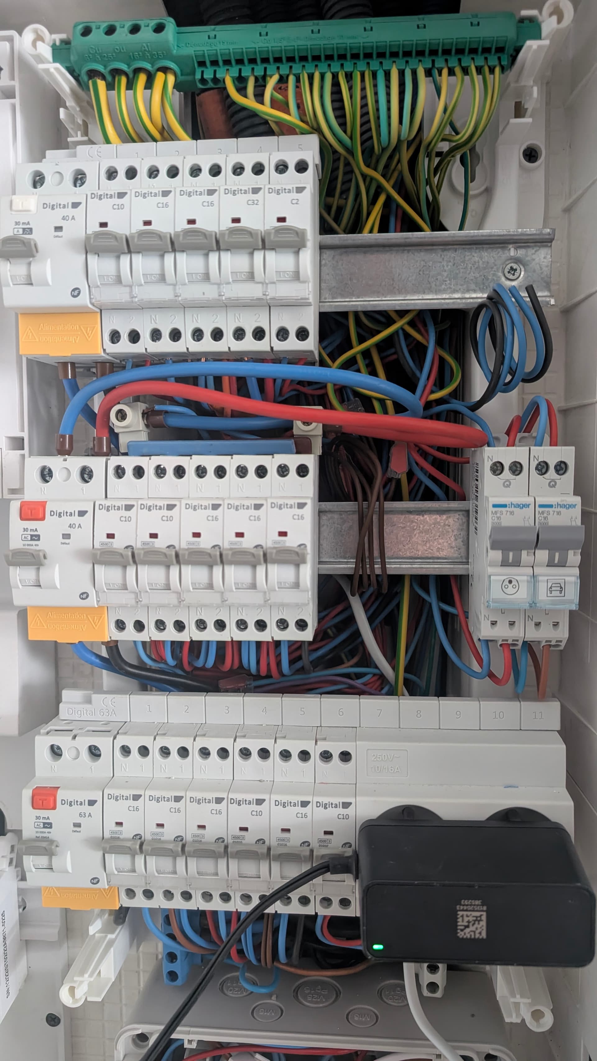 En fait l’objectif est d’avoir le total donc j’ai réussi à mettre une pince directement en dessous du compteur principal sur fil noir. Pour les deux autres pinces je les ai mises sur des équipements que je souhaitent surveiller sous chaque disjoncteur voulue le fil rouge. Merci pour l’explication du câblage de mon placard électrique un beau bordel pour accéder au fil voulu..