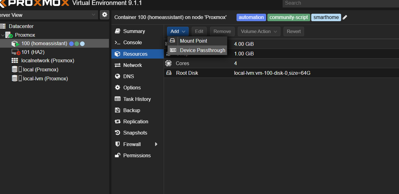 Pb résolu pour install HA sur Proxmox en suivant le helper script