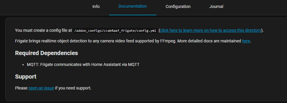 Ce point: You must create a config file at /addon_configs/ccab4aaf_frigate/config.yml m’a été transmis par le module une fois installé, donc j’imagine que c’est la bonne adresse