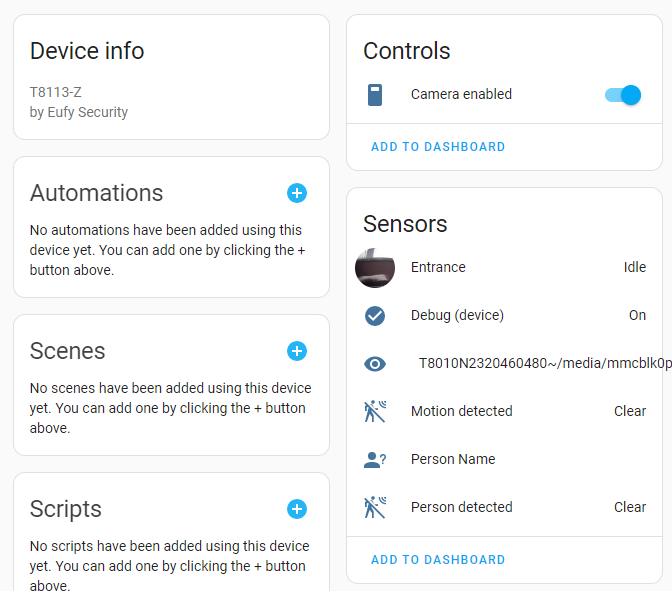 Bonjour; je cherche à intégrer ma camera EUFY S350 dans HA et avoir un flux video sur le tdb; mais ça bloque; j’ai regardé ce tuto: GitHub - fuatakgun/eufy_security: Home Assistant integration to manage Eufy Security devices as cameras, home base stations, doorbells, motion and contact sensors.; j’ai activé RTSP dans l’APP Eufy et j’ai bien un flux visible dans VLC (mais pas toujours…parfois il n’arrive pas à être lu sans que je comprenne pourquoi) ; par contre impossible de créer une entité via generic Camera; est-ce que cela pourrait être un problème de codec H265 ? possibilité de forcer le flux RTSP en H264 ? Avez vous réussi à intégrer cette Camera dans HA ? Merci pour votre aide