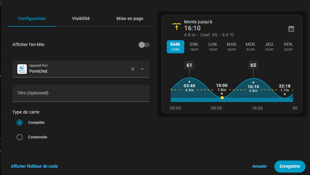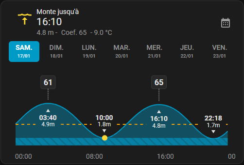 Ajoutez simplement la carte Marées France dans votre dashboard.