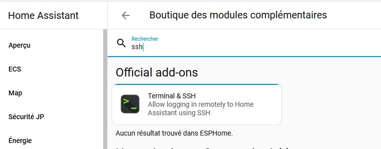 Bonjour, j’ai des difficultés également pour l’installation, je cherche l’add-ons officiel “terminal & SSH” pas la version advanced, pour me connecter en root.