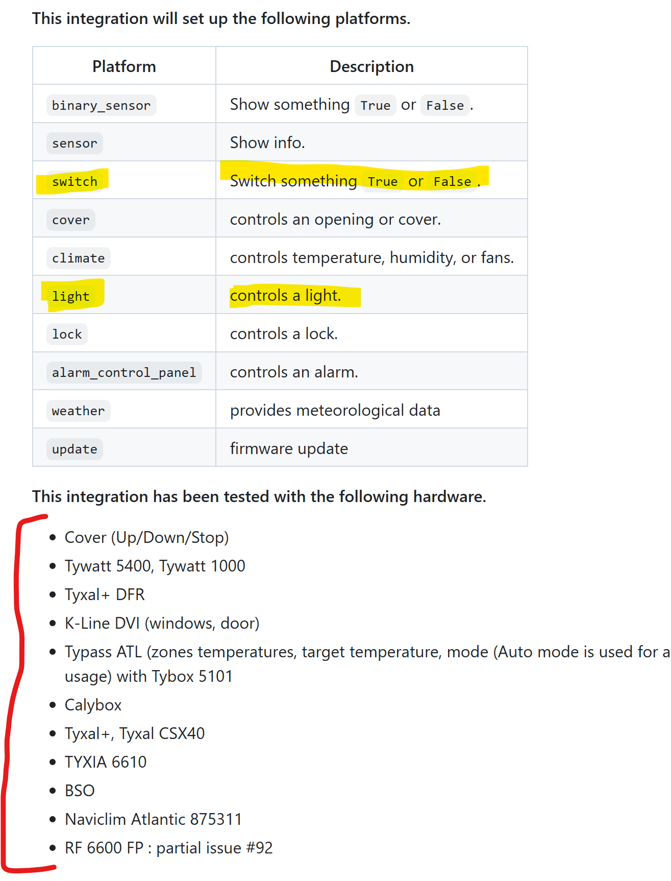 L’intégration Deltadore tydom demande souvent une réinitialisation "Echec de la configuration alors que rien n’a changé), donc je la garde en réserve pour plus tard.