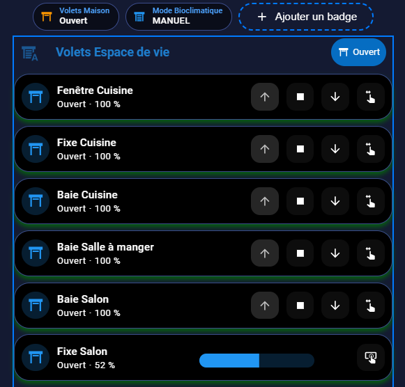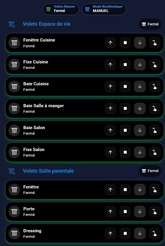 Un exemple d’un tableau de bord de mes volets (Delta dore Tyxia 5630)