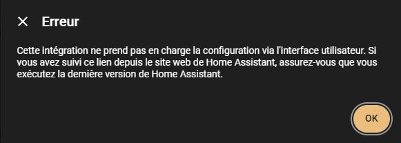 bonjour, j’ai bien réussi a installer l’intégration mais j’ai cette erreur qui me bloque