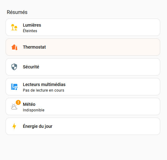 Le souçi, c’est quand je regarde dans le menu automatique que j’ai crée (je m’entraine), il y a un résumé qui se nomme “Thermostat”. Sauf que quand on clique ce sont tous les volets qui sont bien installés la dedans. En plus ce terme thermostat apparaît également en haut à gauche dans la barre bleue.