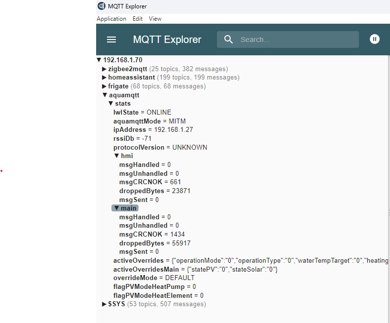 Par contre, que j’utilise AquaMQTT en mode Listener ou AquaDebug je n’ai rien qui remonte.