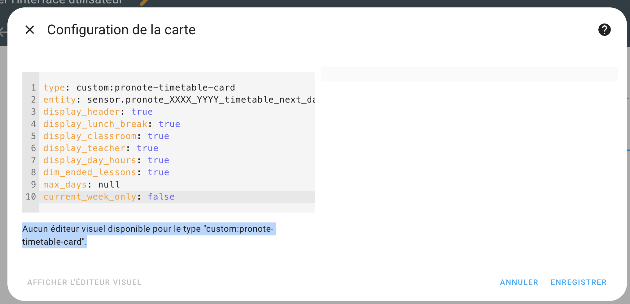 J’ai fait en sorte que ce soit compatible avec les cartes pronotes : GitHub - delphiki/lovelace-pronote: Lovelace cards for the Pronote integration.