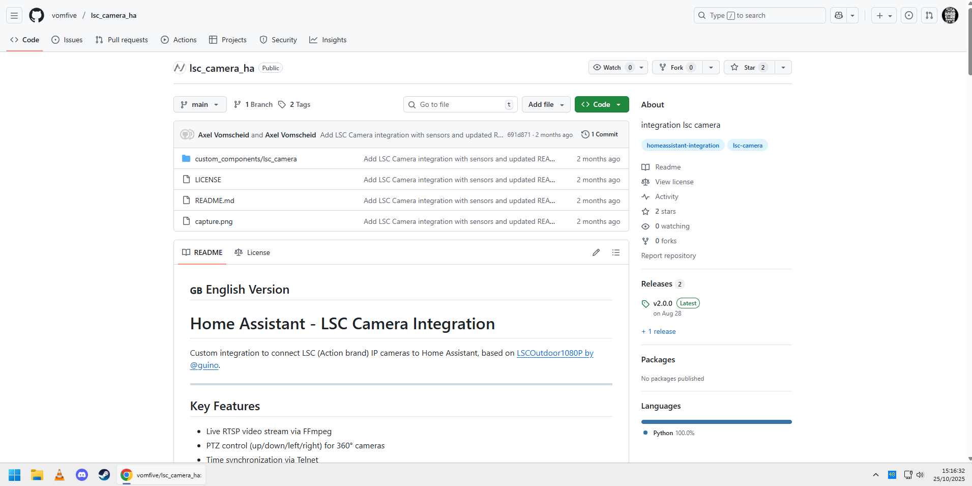 Vous pouvez trouver mon projet ici : GitHub - vomfive/lsc_camera_ha