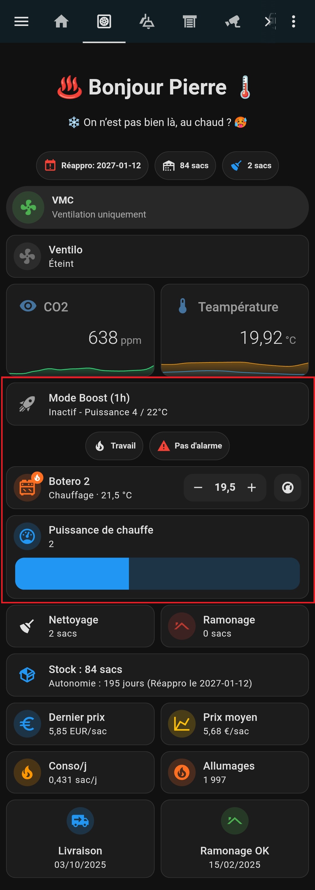 J’en ai profiter pour faire un système de gestion de mon poêle et de ma conso de pellets, mais c’est hors sujet pour cette discussion