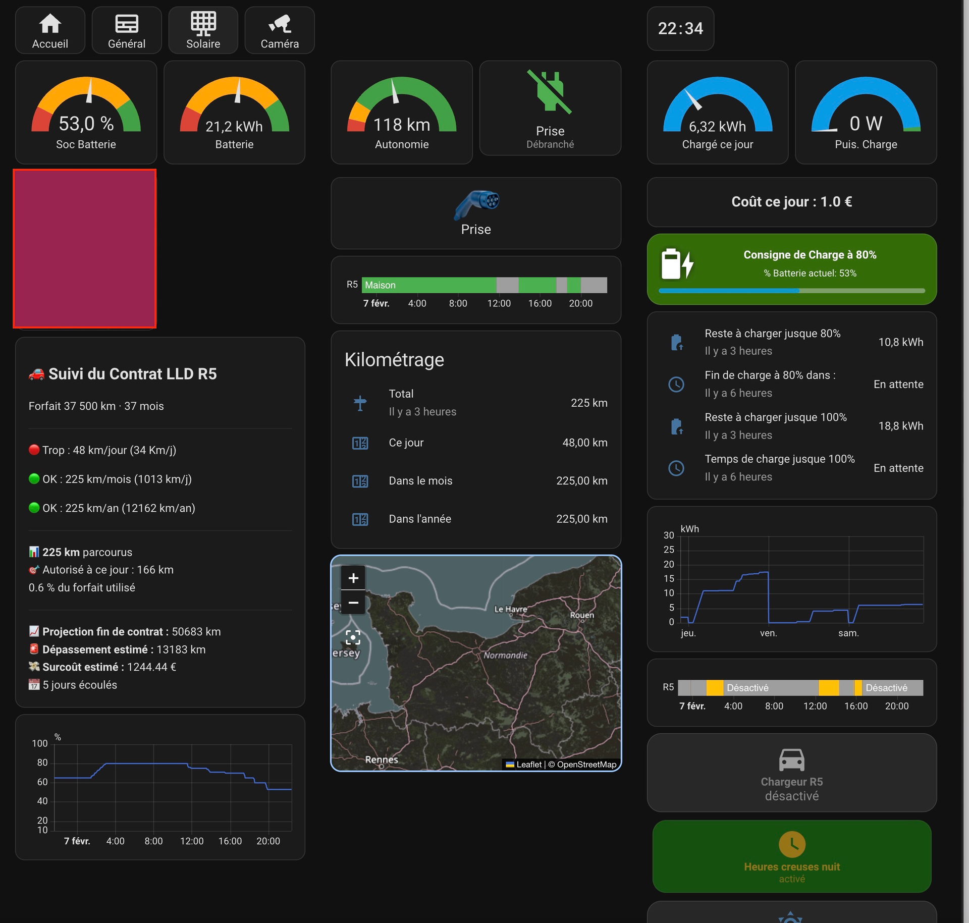 Mon Tableau de bord en construction pour la R5 Renault mais déjà fonctionnel. J’ai démarré HA que depuis 2 semaines