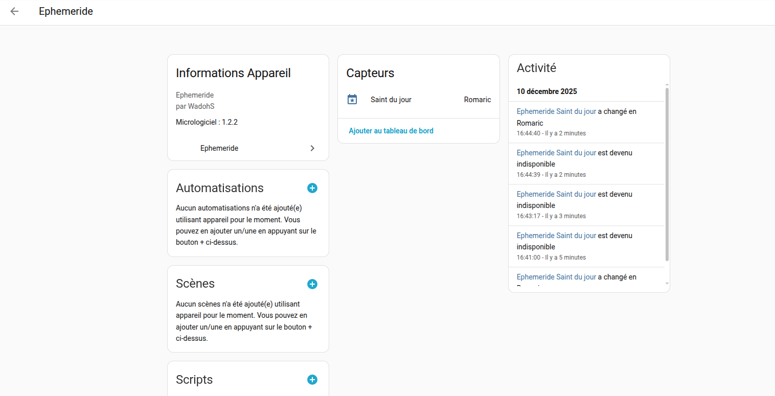 - Reinstaller l’integration Ephemeride