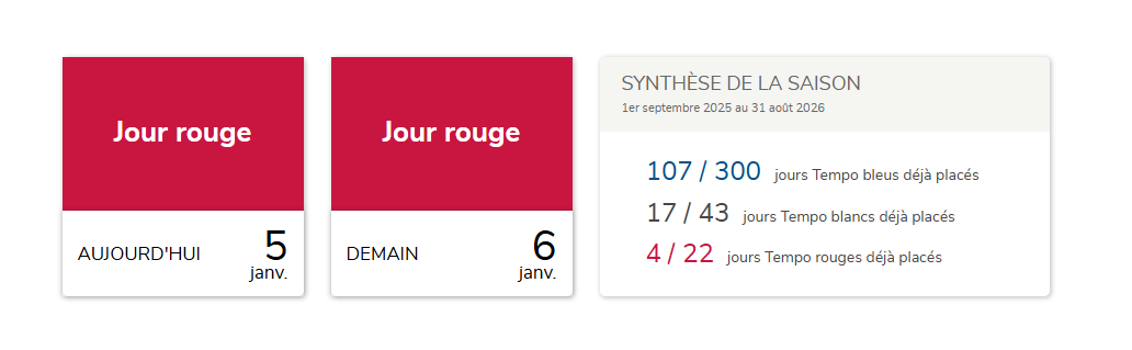 J’ai un jour bleu remonté par l’intégration EDF aujourd’hui alors que nous sommes bien en jour rouge