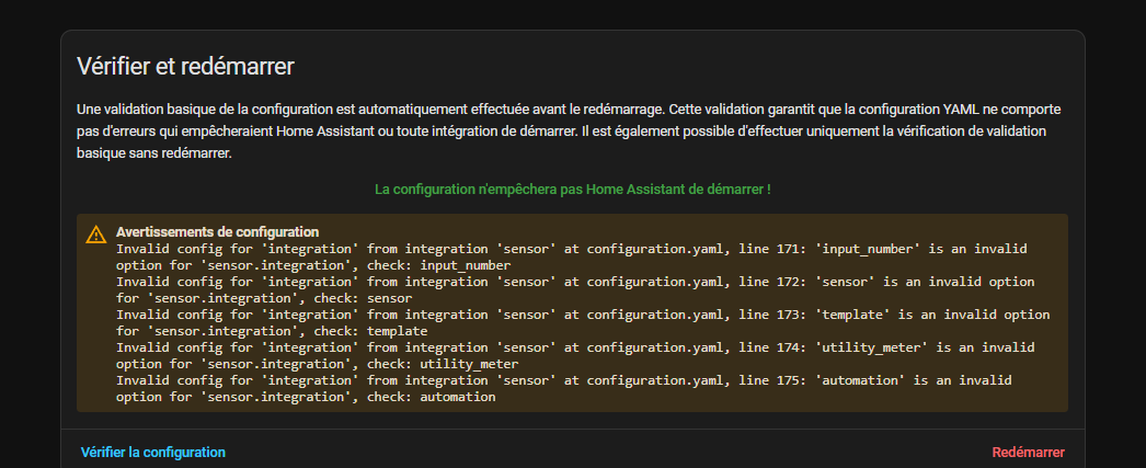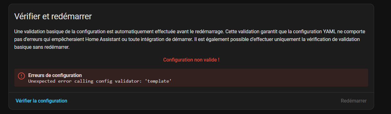 j’ai tout de même essayé de redémarrer HA avec ce message d’erreur mais ça plante tous mes Dashboard