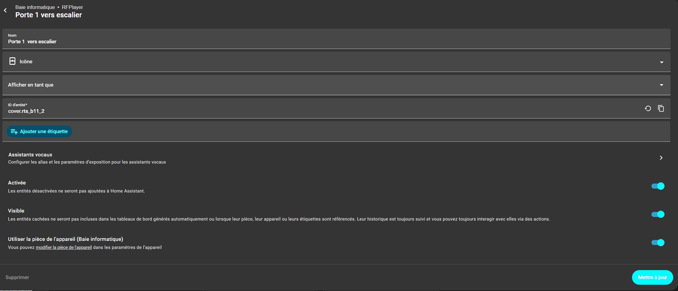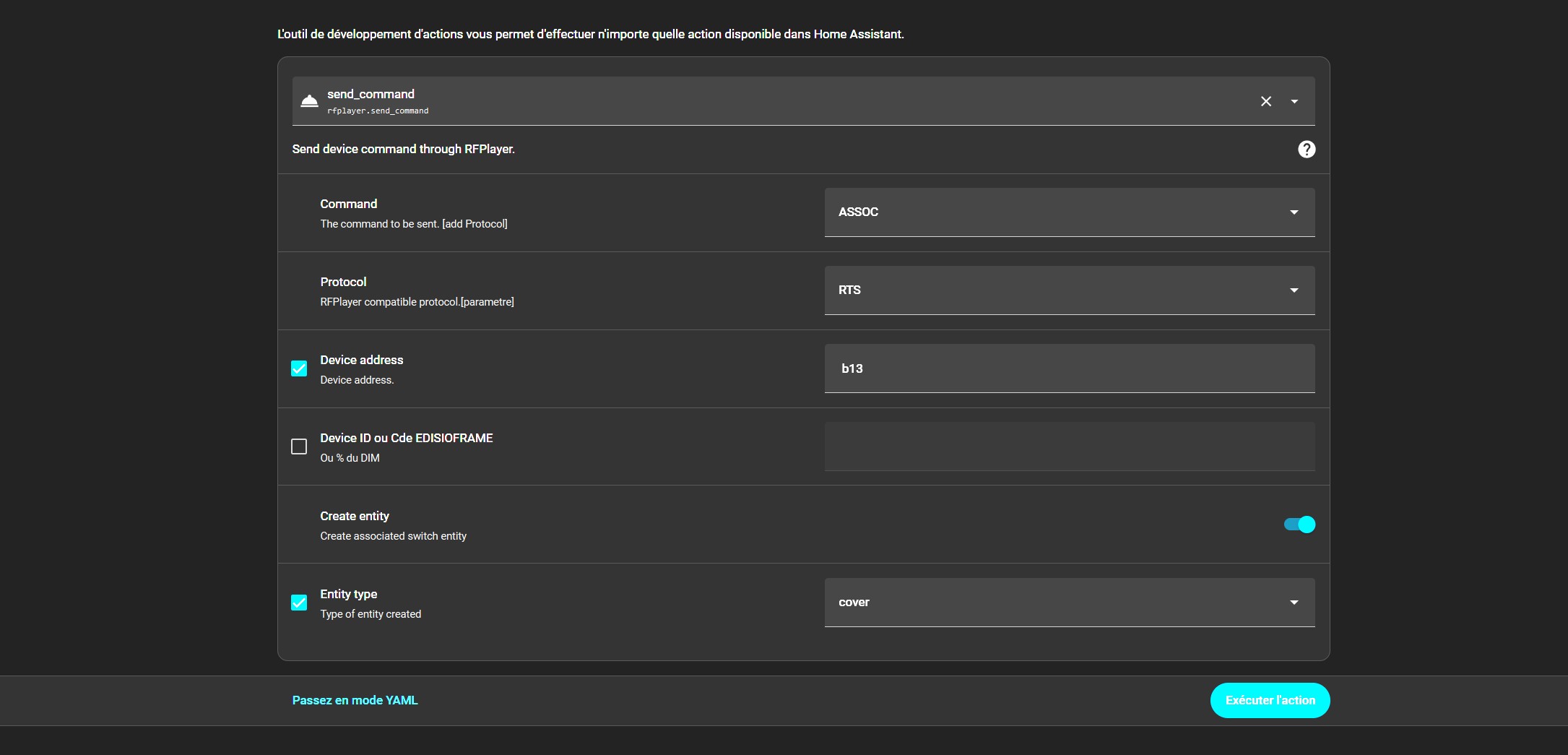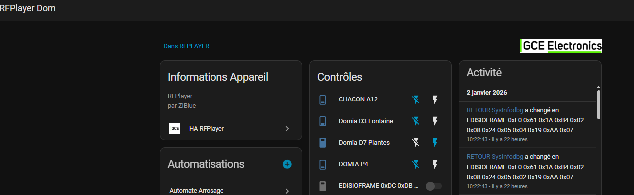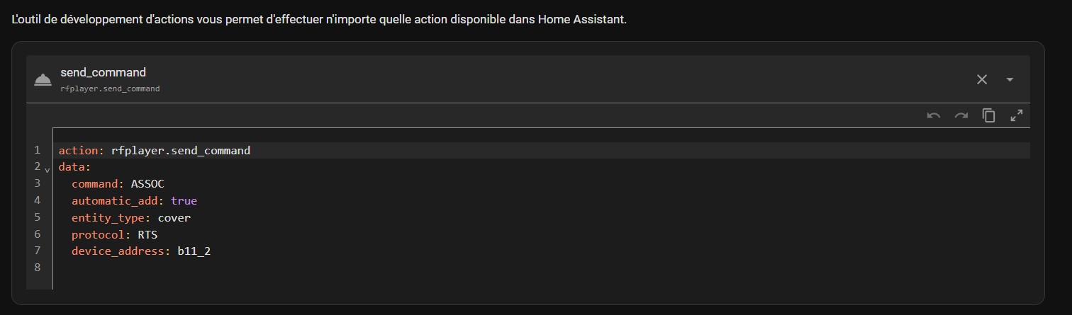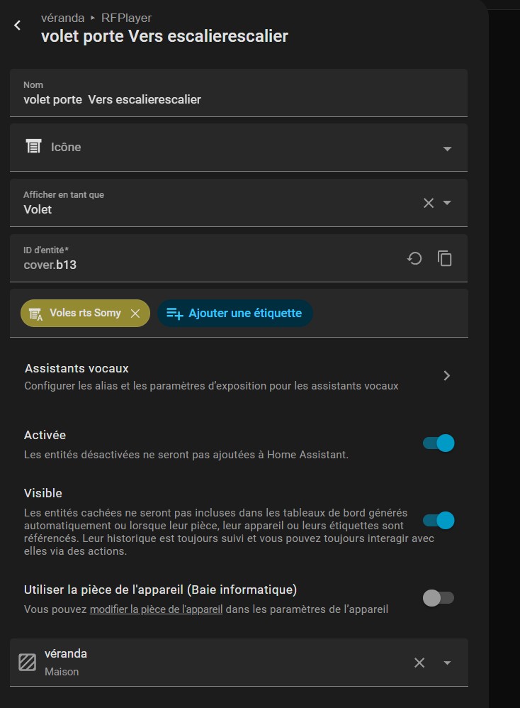 En gros, il te demande si tu es certain que ton volet est associé au RFplayer.