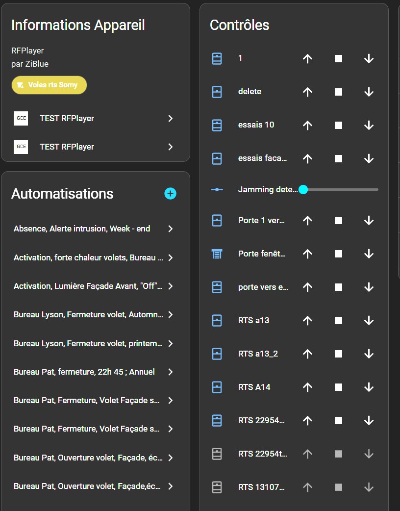 Peut tu montrer la cde que tu fais depuis le Rfplayer pour associer ton volet !