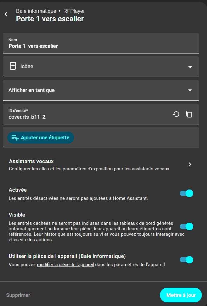 Si lors de l’association le volet répond, devrait être OK ensuite avec le cover de créé !